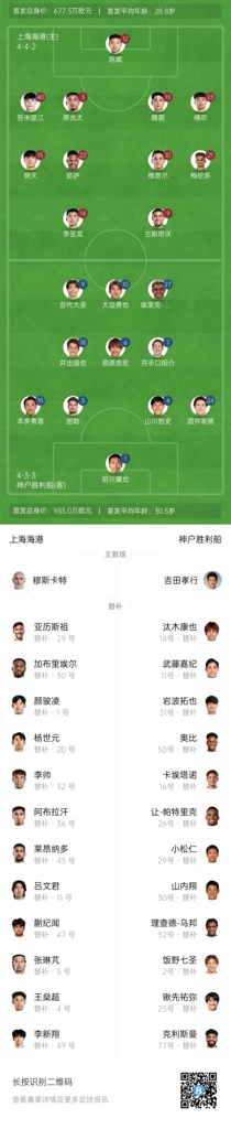 上海海港近6场比赛4胜1平1负,目前在中超排名第二,落后蓉城2分;神户胜利船近6场2胜3平1负,在J联赛位列第四。在上赛季两队的亚冠交手中,海港0-4完败神户胜利船。